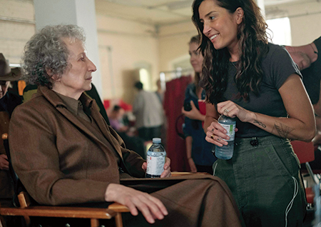 Behind the scenes with Reed Morano (right) and Margaret Atwood, whose novel, The Handmaid's Tale, was adapted by Hulu into a TV series. (Photo: George Kraychyk/Hulu)