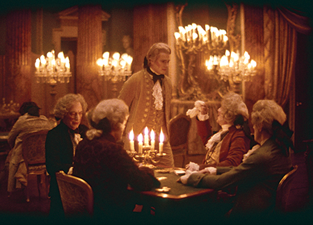 » Before Barry Lyndon (1975), cinema hadn't been able to create period images purely lit by candles. Kubrick's unrelenting mission for natural lighting led him to arrange, with technician Ed DiGiulio, adapting an ultra-fast, 55mm, 0.7 f-stop Carl Zeiss lens (developed by NASA's Apollo program for satellite still photography) for the production's Mitchell cameras. The lenses are two stops faster than the fastest lenses currently used. Zeiss manufactured only 10 of the 0.7 lenses in the 1960s, sold six to NASA, kept one and sold three to Kubrick.