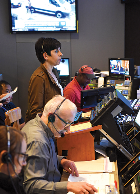 Just before Good Morning America hits the stage at 7 a.m., director Lily Olszewski plants herself in the control room facing a wall of glowing video monitors. There she stands for the next two hours, calling camera shots or prepping an event every few seconds while simultaneously communicating with any of the 50 people looped into her headset.