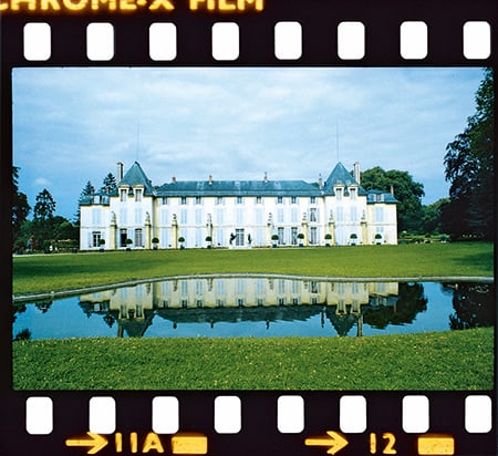(Top to Bottom) Location film roll identifier; Residence of Joséphine de Beauharnais, France (location scouting); Costume study of a French Grenadier uniform (1968). (Photos: Courtesy Taschen)