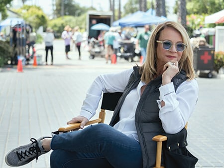 Early morning on the set of Grace and Frankie, UPM Joan Van Horn goes straight into her routine.
