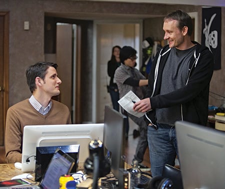 While over the past five seasons, the central cast has become adept at smoothly delivering even the most tongue-twisting tech dialogue, Babbit has come to expect it may not be as easy for guest actors. "They aren't used to the lingo, and so getting them to sound natural is always the goal of the director," says Babbit. "Repetition helps a lot. So does giving them really specific business; saying lines while doing tangible things like holding a pen or eating an apple can make them seem more realistic. In real life, we tend to do multiple things at once; we don't just stand there and talk."