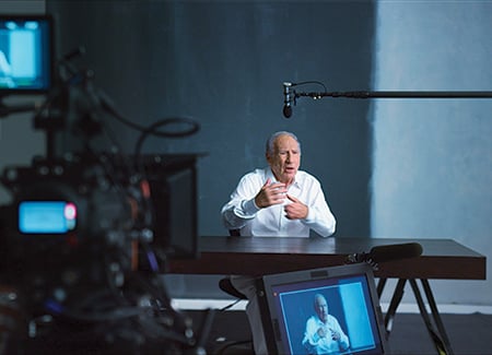 The location also enabled Trachtenberg to shoot Brooks at a more medium depth, as opposed to close-up. "It's always puzzling to me because people talk with their hands," Trachtenberg says. "You see people's physicality and it helps tell their story, watching how they're moving. So I always try to put the camera at a place where you can see them."