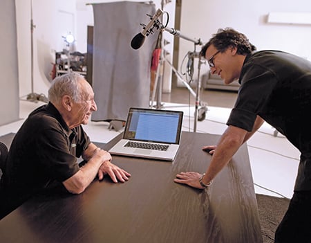 Mel Brooks interacts with director Robert Trachtenberg. (Photo: Drew Schwartz/WNET/American Masters)
