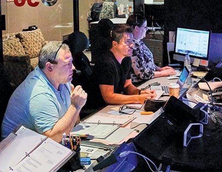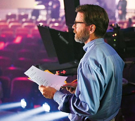 For a lot of late-breaking news items that pop up close to show time, "it's now or never" to incorporate them into the proceedings, says The Late Show With Stephen Colbert director Jim Hoskinson. (Photos: Scott Kowalchik/CBS)