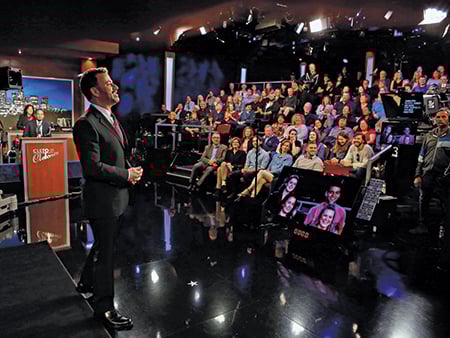 Part of the charm of late-night talk TV is conveying an ease and devil-may-care attitude. As important as it is to prepare for the comedy bits, none of the directors likes to overdo it. "You don't want to over-rehearse or stage things where it doesn't feel like it has any energy to it," says Fisher. His favorite Kimmel moments, in fact, are when the show feels unplanned or lapses into a state of controlled chaos, like the time Bryan Cranston took a shower onstage and then jumped on a Vespa scooter to leave, only it had to be pushed out by a prop guy. "It may not go perfectly but it has that live feel," he says.