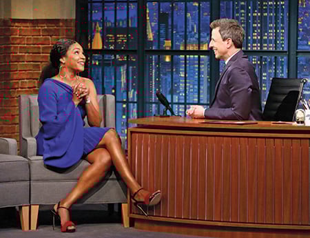 "You think it's going to be the same every time. But every guest is different," says Vietmeier. "They will bring different stories. They'll bring different energies. Every music performance is different." Part of the pleasure of directing late night is also trying out new production elements—whether it's lights or set pieces or new camera configurations. "There's always something different that you have to wrap your head around and try to bring to life," he says.