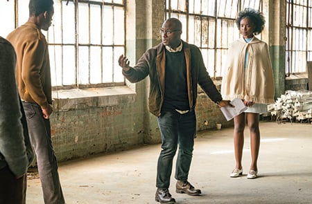 Leads Stephan James and KiKi Layne flank Barry Jenkins on If Beale Street Could Talk. (Photo: Tatum Mangus/Annapurna Pictures)