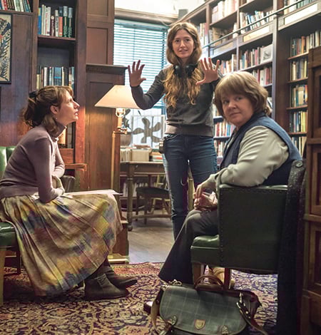 Marielle Heller, center, is flanked by actors Dolly Wells and Melissa McCarthy on the set of Can You Ever Forgive Me? (Photo: Mary Cybulski/20th Century Fox)
