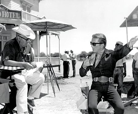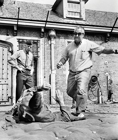 (Top) Aldrich confers with Kirk Douglas on the 1961 Western, The Last Sunset; and demonstrates the proper punch on The Choir Boys (1977) and the proper kick to the ribs on the set of The Dirty Dozen (1967) (Middle). (Bottom) His work with Bette Davis and Joan Crawford (in the background) on What Ever Happened to Baby Jane? (1962) represented a mid-career high point. (Photos: (From top) Photofest; Everett (2); Photofest)