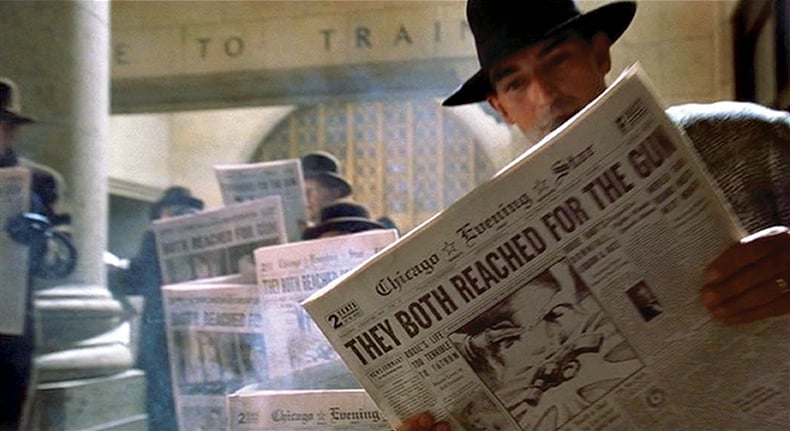 Roxie realizes the press is starting to embrace the idea that they "both reached for the gun." You see the glimmer of triumph in Roxie's eyes. Once again, this is something you can achieve on film that's almost impossible to achieve on stage—a crazy close-up like this that puts you inside a character and what she's feeling.