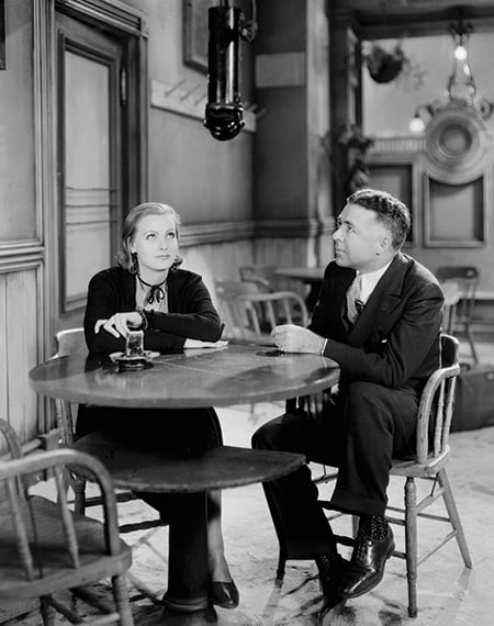 Greta Garbo and Clarence Brown cast a wary eye at the microphone on Garbo's first talkie, Anna Christie (1930)..(Photo: Everett)