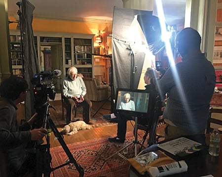 Jason Epstein, above center, reflects on his relationship with Roy Cohn to director Matt Tyrnauer, sitting opposite, for Where's My Roy Cohn? (Photo: Altimeter Films)