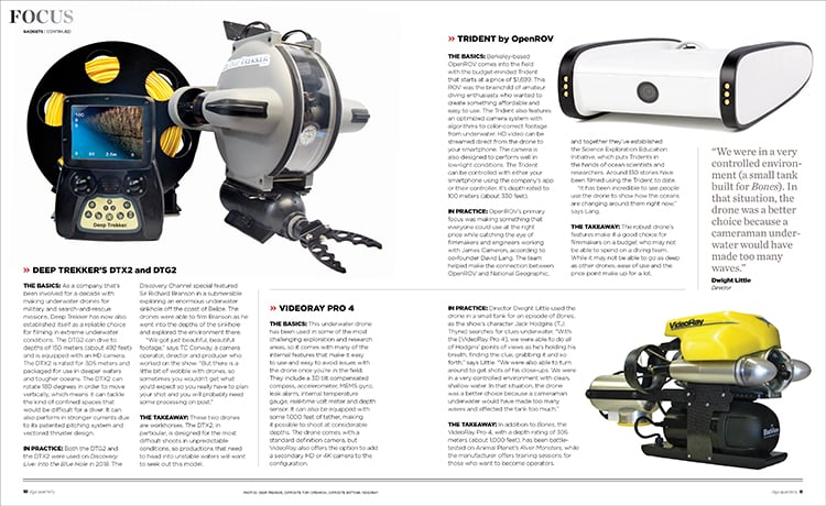 Underwater drones that probe unstable or dangerous sub-aquatic conditions gain traction among filmmakers