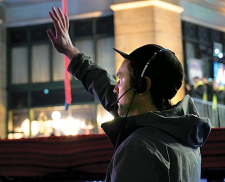 There's a huge pyrotechnic element. McManus ponders how high he wants it to go, how far behind it is in the shot.