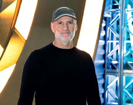 He gives a nod to everyone, from the grips hanging off the obstacle course adjusting their equipment to crew members clustered around cameras set to follow the action.