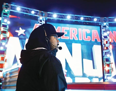 Prior to the show, McManus walks the course with his production crew, including associate director Dave Massey and stage managers J.R. Osborne and Wolfgang Delgado. Camera angles are checked, shots confirmed and McManus constantly cautions to stay vigilant. ("We don't want anyone falling down while carrying a camera or tripping while you are running. Be safe out there.")