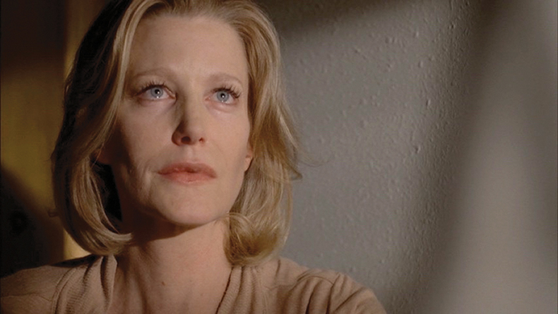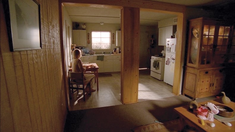 The X-Files developed a claustrophobic look during the years I was there, with many super-tight shots. I wanted to go a completely different way—wide, like a Sergio Leone or John Ford Western. That said, this is good old X-Files coverage, cutting into Walt's forehead. If we were ever going to earn it, it was here, watching Walt say goodbye to his wife. Michelle MacLaren, our go-to director, would watch Once Upon a Time in the West with me. We'd comment on Leone's ability to cut between extremes; from the widest wide to the tightest tight. If you're going to go to extremes, you damn well better go to both ends of them.