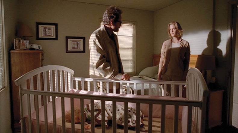 I remember this shot the most vividly because it came at the end of the day. Andy Voegeli, our "A" camera operator, had just become a father himself. He started crying so hard in the middle of it that he couldn't see through the eyepiece. We were all afraid the camera was shaking and that we'd have to redo it. Luckily, we didn't. Andy is a total pro, teary-eyed or not. Bryan and Anna were tearing up, too. I don't think there was a dry eye on the set. We had four or five babies on set, so we were whispering the entire time. Somehow, that made it even more special. This little girl was a dream to work with—she never once woke up. She had no idea she was on television. Hopefully, she does now.