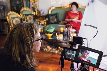 From her initial interview with Imelda Marcos and throughout The Kingmaker, Greenfield demonstrates Marcos' attempts to rewrite history and whitewash the ills of her late husband's regime. Greenfield's process of total immersion into the topic, coupled with time, resulted in a completely different film than she pitched. "I spent five years on this, and the story I started out telling didn't turn out to be the important story," she says. With the election of strong man Rodrigo Duterte to the Philippines' presidency, she found her ending—once she confirmed a clear-cut link between the Marcos family and Duterte. "I went back and reedited and restructured the movie to tell that story," she says.