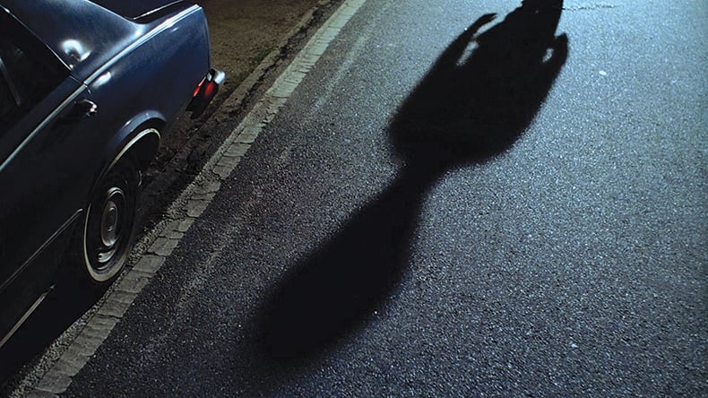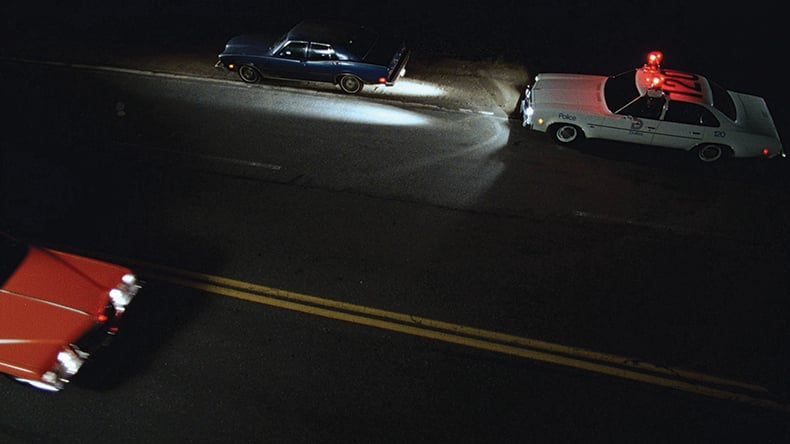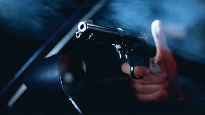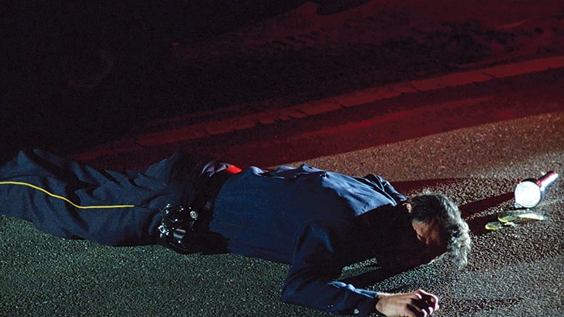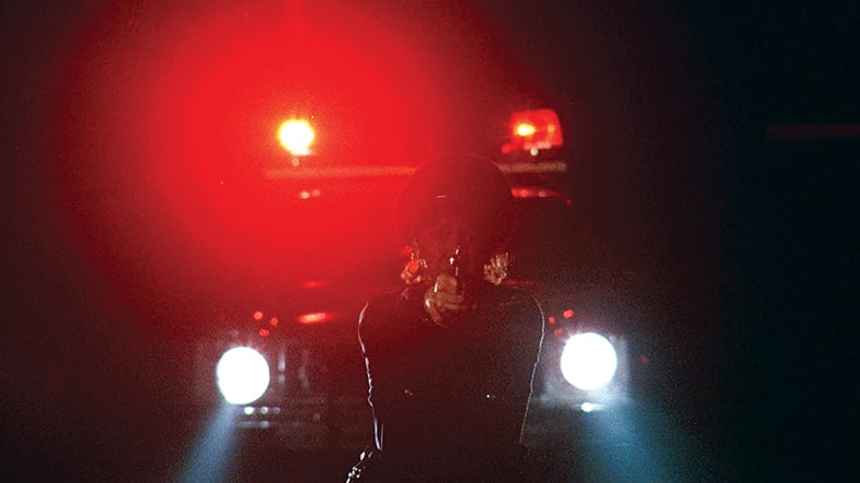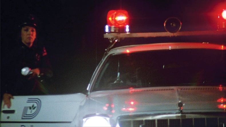 We know Officer Turko did get out eventually, but I don't believe she ran out until after the shooting. On the soundtrack you hear the tires, the burning of rubber and the car screeching away into the night, with her repeatedly firing her pistol to no avail. Stefan Czapsky was the most accomplished DP in America for lighting at night and achieving really rich blacks. Sometimes we joked about creating a look that I had seen in countless crime dramas from the '40s and '50s—a documentary noir.