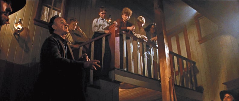 Inside, everyone's having a good time with the sheriff, Little Bill (Gene Hackman), buying drinks and planning a search party. What was brilliant about the screenplay was its gradual build to Munny's confrontation with Bill. Little Bill is a charming guy who just wants to keep order. But when he snaps, he goes for really heavy violence. It made for a very interesting character. Gene originally didn't want the part. He was just getting ready to retire and didn't want to do any violence because of some of the movies he'd done in the past. So, I had to talk him into it.