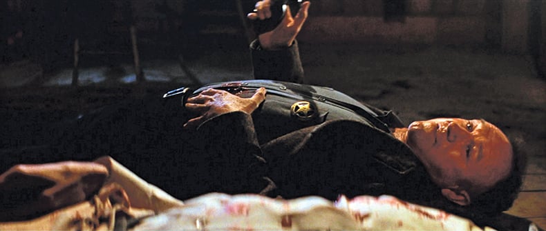 Dangerous to the end, Bill is still alive, reaching for his pistol, and we cut between him and Munny. Sometimes I'll shoot things only the way they're supposed to be edited, and not give it any other coverage. But in scenes like this, where Munny is cleaning house, I give myself and the editor a chance to make choices later on as to how long each shot holds on one person or the other. Joel Cox was the editor on this one. He'd argue for what he did and, between us and the assistant editor, everybody got on the same page.