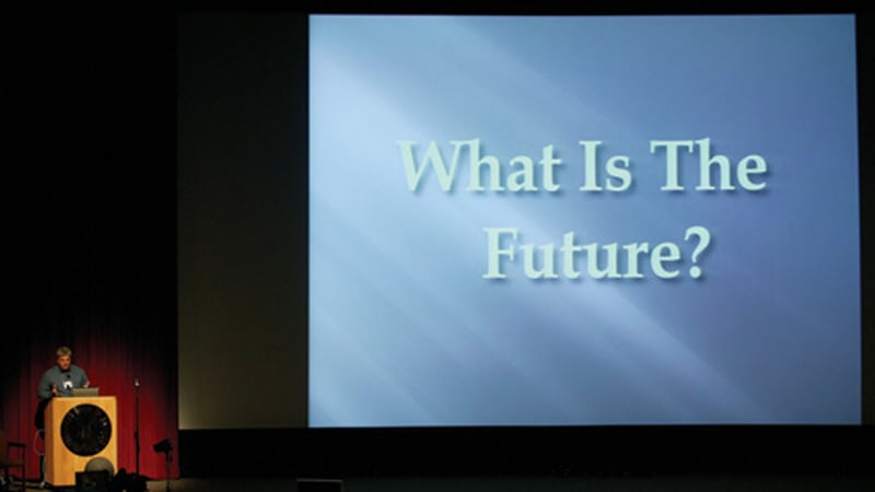 “Today is about how to use technology to tell stories,” DGA Special Projects Committee Chair Jeremy Kagan said in his greeting at the top of the Keynote program. He stated that the DGA is proud to bring together this special program for DGA members, but cautioned that while we welcome these new tools, “as new ways to slice, dice, copy, store, access and profit from our work continue to proliferate, our creative and economic rights continue to need protection.” He reminded DGA members that their guild is working hard to keep up with the new developments and protect their creative and economic rights. Digital Day Committee Chair Randal Kleiser then introduced Oscar-winning visual effects pioneer Doug Trumbull, who addressed the audience from a “virtual podium” via videoconference from Synthespian Studios at the Museum of Contemporary Art in North Adams, Massachusetts. The ‘virtually present” Trumbull discussed his early experiments with “immersive experiences” working on Stanley Kubrick’s 2001: A Space Odyssey. While presenting his latest advances in virtual sets and visual displays, Trumbull noted “we still need all the drama and excitement of movies, and we need compelling content and stories, yet we need to develop new ideas about the form of the experience. As you get into 3D and it becomes more immersive, we’re going to be going into some new directorial territory.”