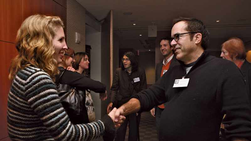 At the Gotham reception on December 11, two of Slamdance's founding directors, Paul Rachman (American Hardcore) and Tom Soper (Fast and Reliable), gave the filmmakers a behind-the-scenes view of the festival, and DGA IDC member Jamie Babbit (The Quiet) informed them about the flexibility the DGA Low Budget Agreements offer indie directors.