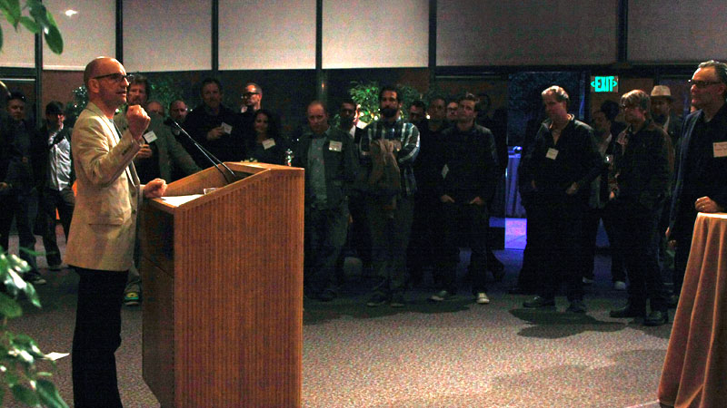 DGA National Vice-President Steven Soderbergh spoke to the directors at the Los Angeles reception and Host Committee member Laura Belsey addressed the directors at the New York event. Both explained how the Guild worked with the AICP and the Advertising Agencies to create the Code after a group of commercial directors in New York asked for assistance in addressing issues leading to the deterioration of their creative rights such as the elimination of the prior industry standard of three treatments per campaign; the use of ideas presented in a director's treatment in a commercial that was subsequently awarded to a different director; and the exclusion of the director from post-production. After a number of additional meetings with commercial directors in Los Angeles and New York, Guild representatives met with over 40 heads of production from the major agencies and in the spring of 2009, obtained the commitment to adhere to these guidelines that are designed to help curb these abuses. To ensure commercial directors are aware of these issues, the Guild distributed wallet-size copies of the Code to the members present.