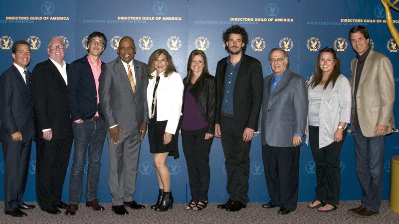 Left to Right: ATAS Chair and CEO Bruce Rosenblum, Outstanding Directing for a Variety Special nominee Louis J. Horvitz (The Kennedy Center Honors), Outstanding Directing for Nonfiction Programming nominee Robert Trachtenberg (American Masters, “Mel Brooks: Make a Noise”), DGA President and Outstanding Directing for a Comedy Series nominee Paris Barclay (Glee, “Diva”), Outstanding Directing for a Drama Series nominee Lesli Linka Glatter (Homeland, “Q&A”), ATAS Director Peer Group Governor and Outstanding Directing for a Comedy Series nominee Gail Mancuso (Modern Family, “Arrested”), Outstanding Directing for a Miniseries, Movie or a Dramatic Special nominee Garth Davis (Top of the Lake, “Part 5”), ATAS Director Peer Group Governor Lee Miller, Outstanding Directing for a Comedy Series nominee Beth McCarthy-Miller (30 Rock, “Hogcock!/Last Lunch”), and 2012 Outstanding Directing for a Comedy Series winner Steven Levitan (Modern Family, “Baby on Board”).