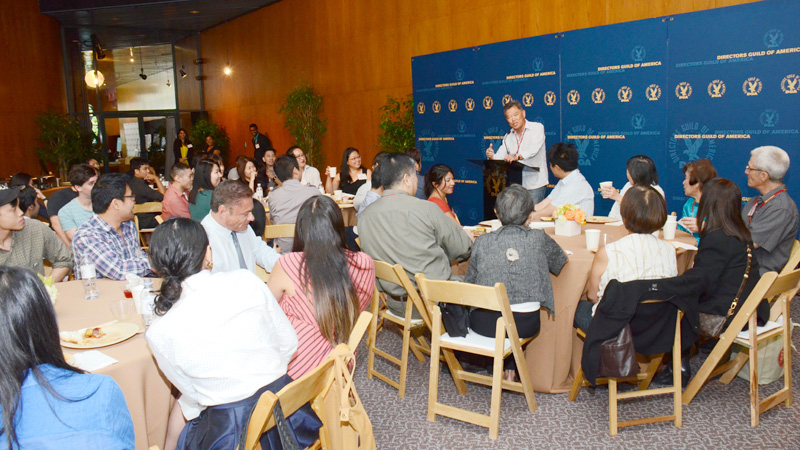 As part of its continuing outreach to independent filmmakers on May 2, the Guild hosted its annual brunch for the LAAPFF Filmmakers in the Los Angeles headquarters atrium. During the brunch, the filmmakers got valuable tips about the festival from LAAPFF staff, and heard more about the Guild, the industry and the work of the DGA Asian American Committee (AAC) from AAC Co-Chair Ron Dempsey and AAC Co-Chair Lisa Chu was on hand to answer questions about the Guild. The filmmakers also heard from AAC Co-Chair Emeritus Henry Chan whose feature 100 Days took home the LAAPFF Audience Award for "Favorite Feature-Length Narrative."
