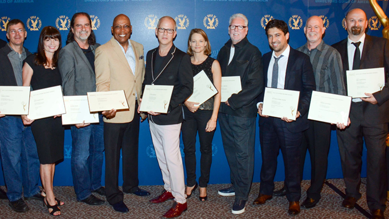 Left to Right: Nonfiction Programming nominees Ken Fuchs (Shark Tank, “Episode 501”) and Craig Spirko (Project Runway, “Sky’s the Limit”); ATAS Director Peer Group Governor/Comedy Series nominee Gail Mancuso (Modern Family, “Vegas”); Variety Special nominee Glenn Weiss (67th Annual Tony Awards); DGA President/Comedy Series nominee Paris Barclay (Glee, “100”); Miniseries, Movie or Dramatic Special nominee Ryan Murphy (The Normal Heart); Comedy Series nominee Jodie Foster (Orange is the New Black, “Lesbian Request Denied”); Variety Special nominee Louis J. Horvitz (The Kennedy Center Honors); Miniseries, Movie or Dramatic Special nominee Alfonso Gomez-Rejon (American Horror Story: Coven, “Bitchcraft”); Variety Special nominee Gregg Gelfand (The Beatles: The Night That Changed America); and Drama Series nominee Neil Marshall (Game of Thrones, “The Watchers on the Wall”).