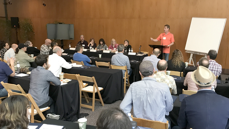 On June 10, DGA members with multi-camera sitcom directing experience were invited to a seminar at Guild headquarters in Los Angeles. The breakfast event, Breaking Down and Marking a Script for Camera for Multi-Camera Sitcoms, was led by director Mark Cendrowski (Big Bang Theory) and featured directors Rich Correll (Fuller House), Victor Gonzalez (Last Man Standing), Gay Linville (Big Bang Theory), and Mimi Deaton and Jody Margolin Hahn (Nicky, Ricky, Dicky and Dawn). Each of the panelists spoke to their fellow directors about how they mark a script both for camera and blocking purposes, illustrated by accompanying clips from each of the shows and samples of the marked scripts. As they went through the clips each director explained how and why they marked their scripts the way they did.