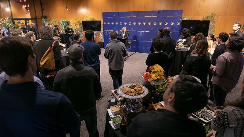 On November 15, nearly 60 new DGA members of all categories attended an informal cocktail reception in the Los Angeles headquarters atrium where they received vital information about the inner workings of the Guild.