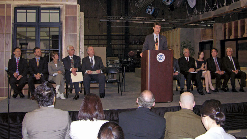 The Department of Homeland Security's U.S. Immigration and Customs Enforcement (ICE) launched "Operation In Our Sites," an important new federal initiative to fight Internet theft. ICE Assistant Secretary John Morton was joined by the U.S. Attorney for the Southern District of New York, the DGA, IATSE, the MPAA and the studios. Morton reported to the assembled crowd that "Operation In Our Sites" had already conducted its first action that morning, seizing the domain names of nine websites that host pirated material such as first-run movies that are still in theatrical release, and seizing assets from 15 bank, PayPal, investment and advertising accounts.