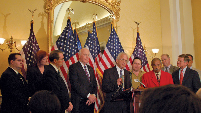 Senate Judiciary Committee Chairman Patrick Leahy (D-VT) was joined at the podium by House Judiciary Committee Chairman Lamar Smith (R-TX), House Judiciary Committee Ranking Member John Conyers (D-MI), Chair of the House Judiciary Subcommittee on Intellectual Property, Competition and the Internet Bob Goodlatte (R-VA) and Congressman Howard Berman (D-CA). Representatives from labor and business filled the room in support of the legislators’ message that Internet theft and counterfeiting are damaging the American economy and resulting in the loss of billions of dollars and thousands of jobs.