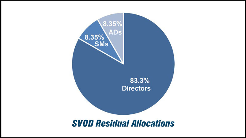 During the most recent Freelance Live and Tape Television Agreement (FLTTA) negotiations, the Guild won a significant victory that, for the first time, includes the sharing of subscription streaming (SVOD) residuals among the Directorial team (see chart for below for breakdown).