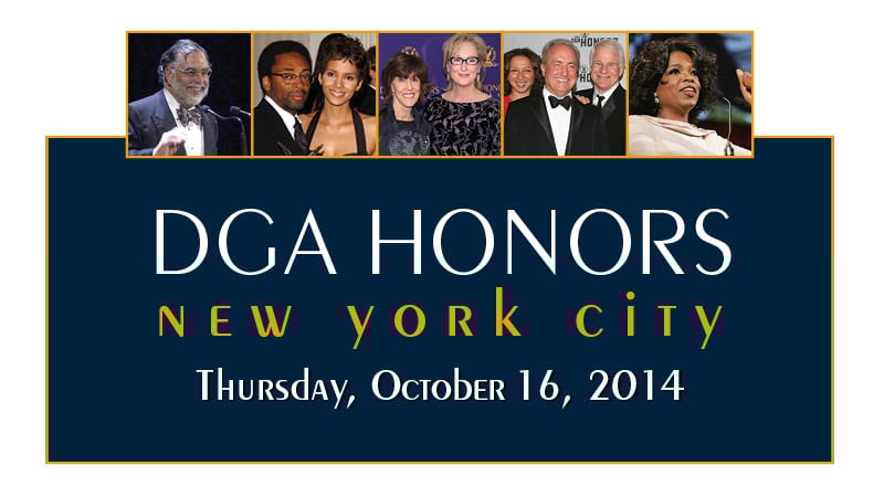 Los Angeles – The Directors Guild of America today announced that the 2014 DGA Honors will take place on Thursday, October 16, 2014 at the DGA Theater in New York City.