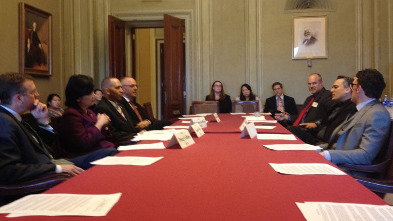 Washington, D.C. – Today, Representatives Judy Chu (D-CA) and Howard Coble (R-NC), Co-Chairs of the Congressional Creative Rights Caucus, in conjunction with the Directors Guild of America (DGA), co-hosted a roundtable discussion with Emmy-Award winning directors Anthony and Joe Russo. The directors, who gained acclaim for their comedy series’ Arrested Development and Community, joined lawmakers, including Democratic Whip Steny Hoyer, to talk about their latest film, Captain America: The Winter Soldier, and engage the lawmakers in a discussion about creativity and filmmaking. As members of the Directors Guild of America, the Russo brothers shared insights about directing, the role of the director, and the importance of protecting intellectual property.